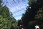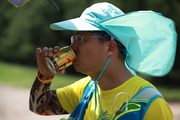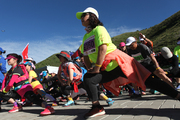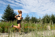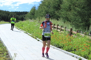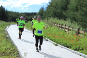 8月14日,来自瑞典有的越野爱好者李娜在马拉松越野赛比赛中。